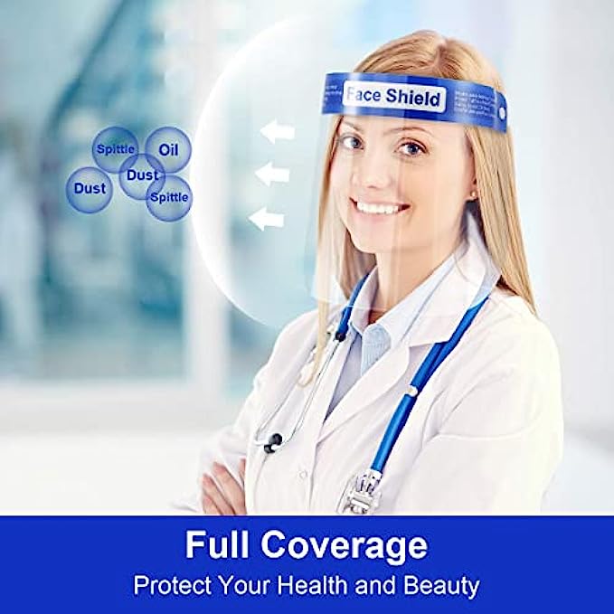 • 【Environment Friendly & Premium Quality】 We always insist on using premium materials to produce higher-quality products. This face shield is made of recyclable waterproof PET (polyethylene terephthalate) to effectively isolate saliva and fully protect the face from sprays, splashes, drops, dust, oil, smoke and etc.