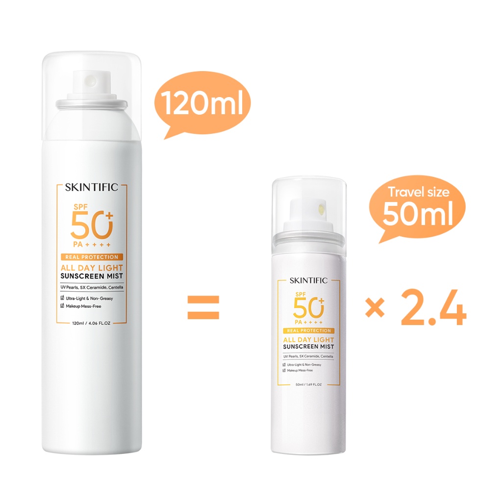 [120ml] SKINTIFIC All Day Light Sunscreen Mist SPF50 PA++++ Sunblock Spray Anti UV Face Body Spray Anti UV UVA UVB