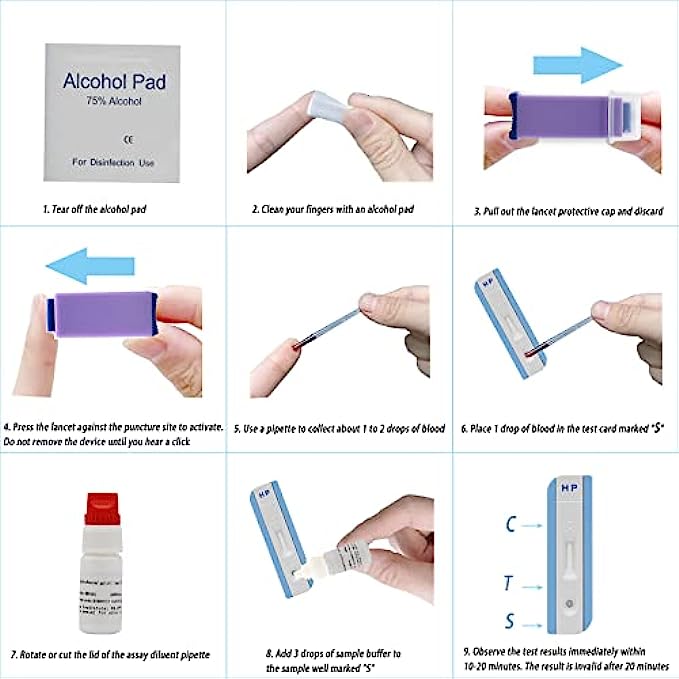 4 Tests Helicobacter Detection at Home Detection kit Self-Test at Home, Results in 10-15 Minutes, No Need to Go to The Laboratory