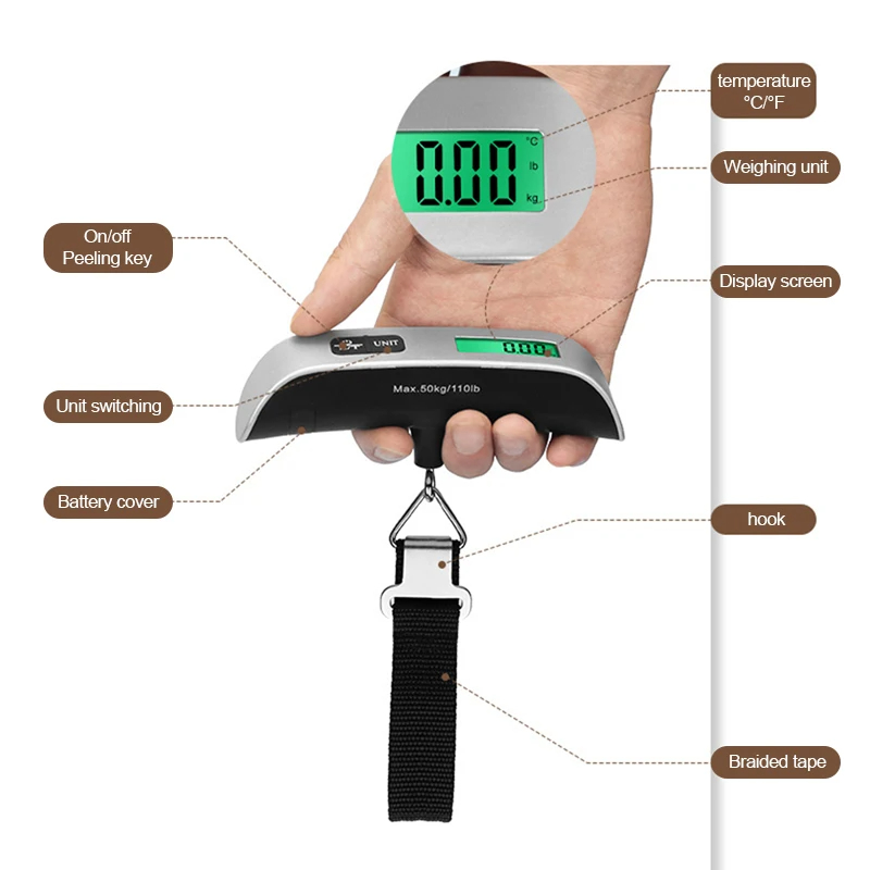 50Kg/10g Electronic Hanging Scale Kitchen LCD Digital Scale BackLight Fishing Weights Pocket Scale Travel Luggage Scales