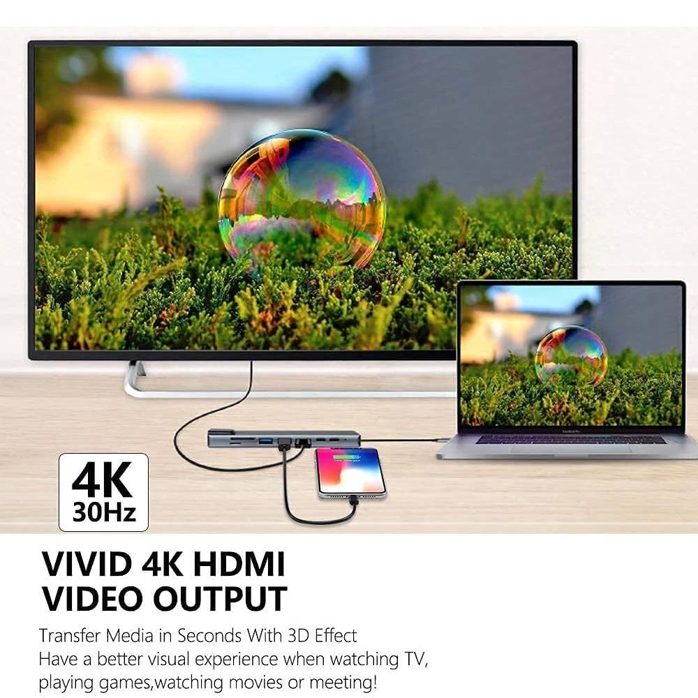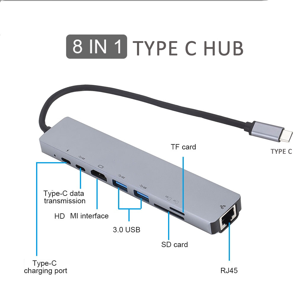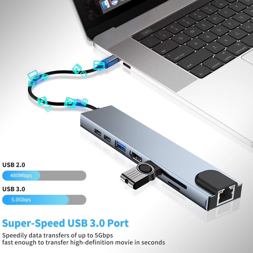 8 In 1 USB Type C Splitter For 4K HDMI RJ45 Ethernet 3.0 TF Card Reader PD Power Distribution Mac-cbook Pro Dock