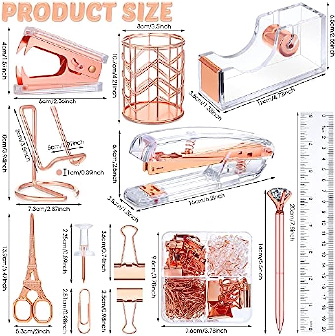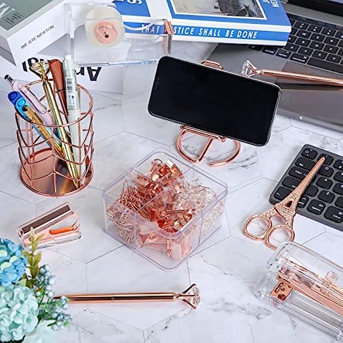 • Packing Listing: you will get a set of desk accessories, which includes 1 stapler, 1 tape holder, 1 staple remover, 1 pen holder, 1 box of staples, 1 mobile phone holder, 2 diamond pens, 1 ruler, 1 scissors and 1 box of binder clips; This set can meet your needs in daily life and work