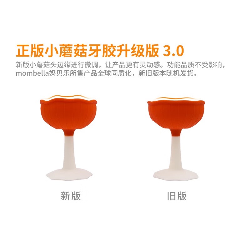Mombella妈贝乐小蘑菇安抚牙胶 婴儿牙胶 宝宝防吃手磨牙硅胶玩具可水煮