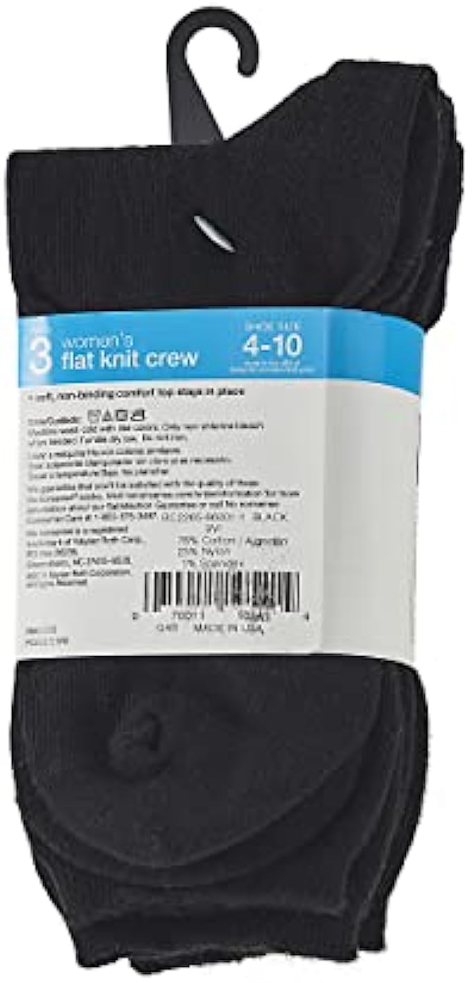 • 3 pair pack; flat knit crew socks