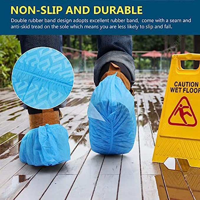 Shoe Covers Non Slip, 100 Pack(50 pairs) Thick Extra Disposable Boot Covers Slip Proof Shoe Cover for Indoors Outdoors Recyclable Durable Protector Covers Fits Virtually Most Shoes