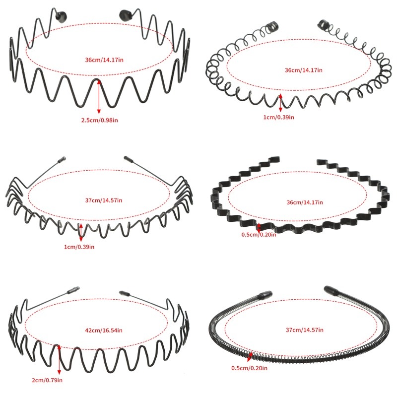 Anti-slip Unisex Black Metal Wave Headband Simple Sports Headband Men Women Hair Accessories