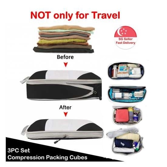 Compression Packing Cubes 3 / 4 PC Organiser Bag Space Saving Storage Organizer Travel Vacuum Luggage Clothes Saver Bags