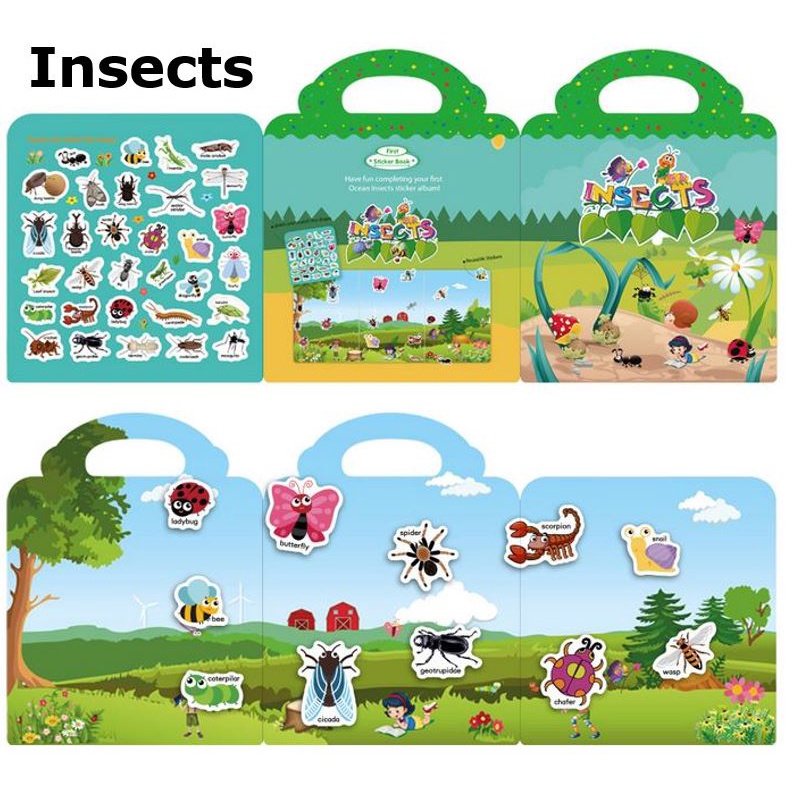 Kids Education Reusable Sticker Book (6Themes) English & Mandarin Learning Sticker Book