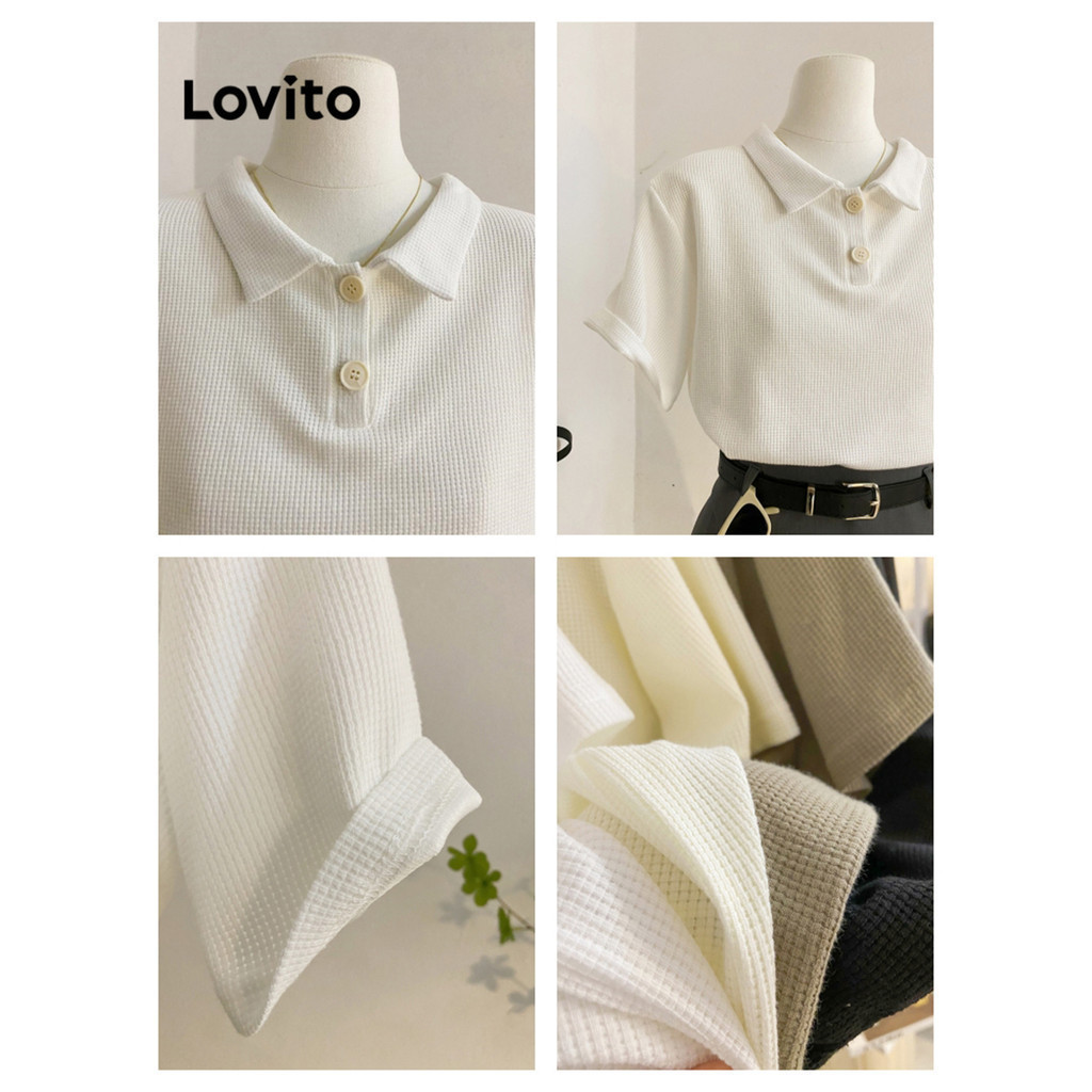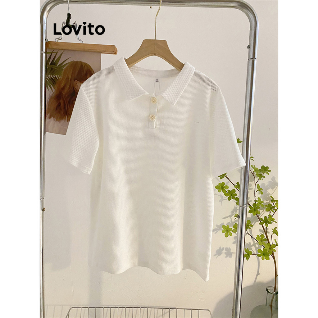 Lovito Casual Plain -Waffle Knit -Polo T-Shirt for Women L68ED039 (Multi-color)