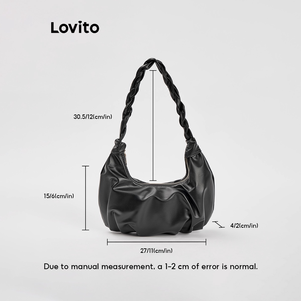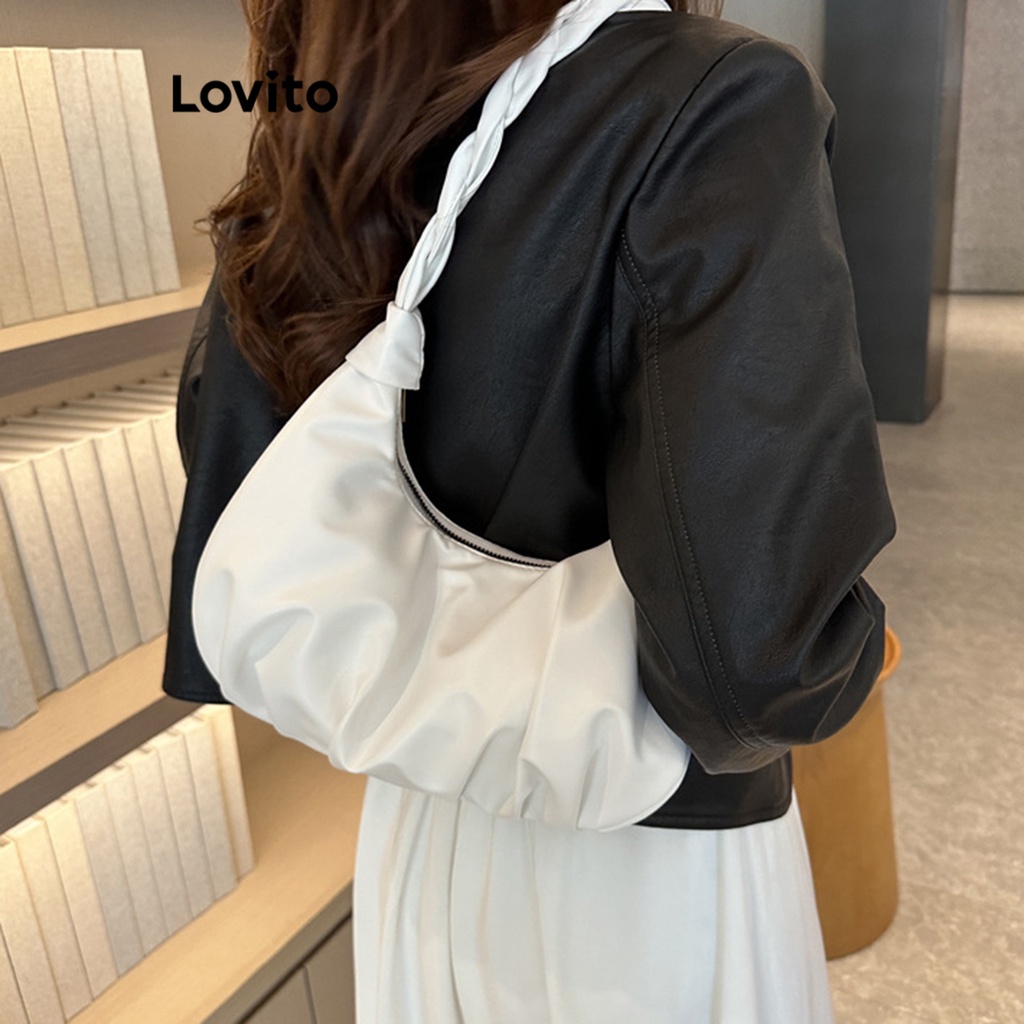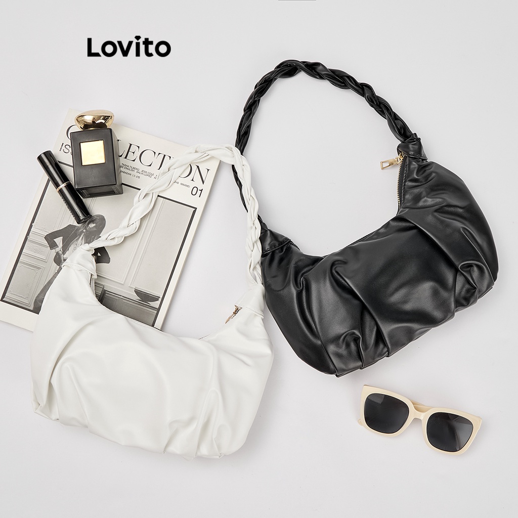Lovito Casual Plain Plicated Bag for Women L66AD043 (White/Black)