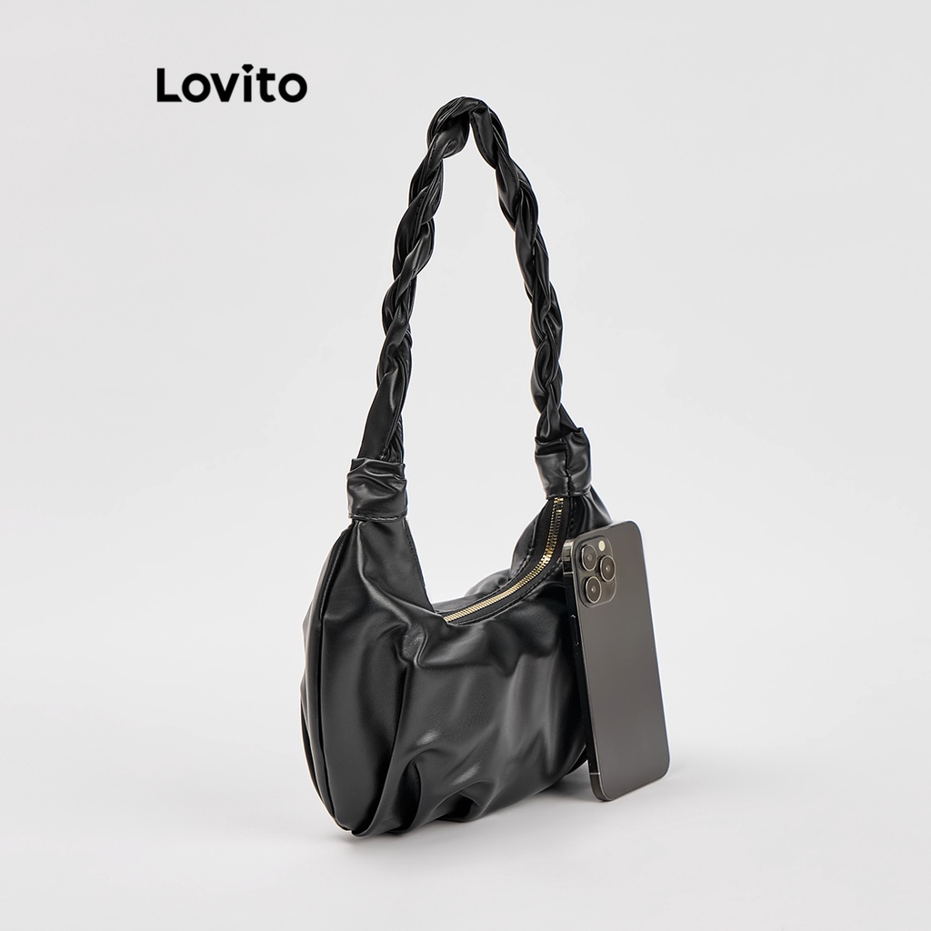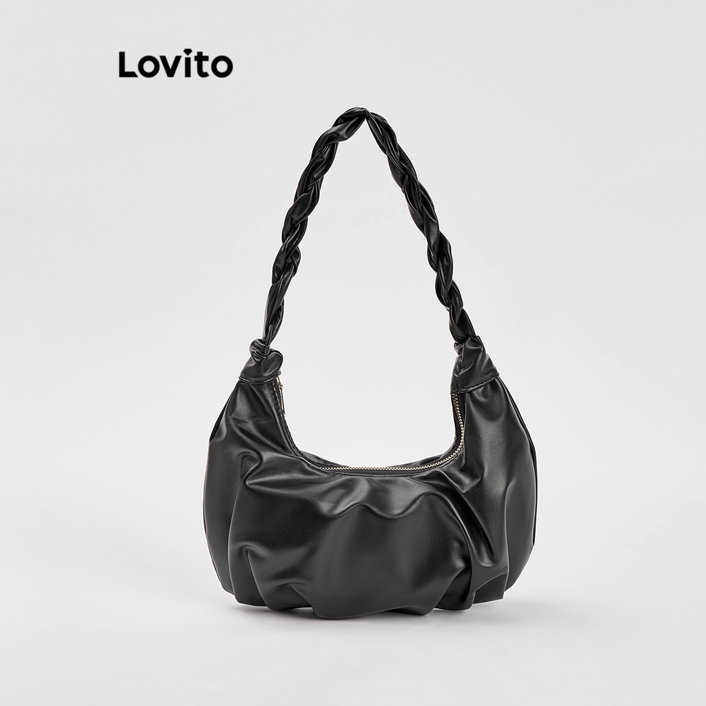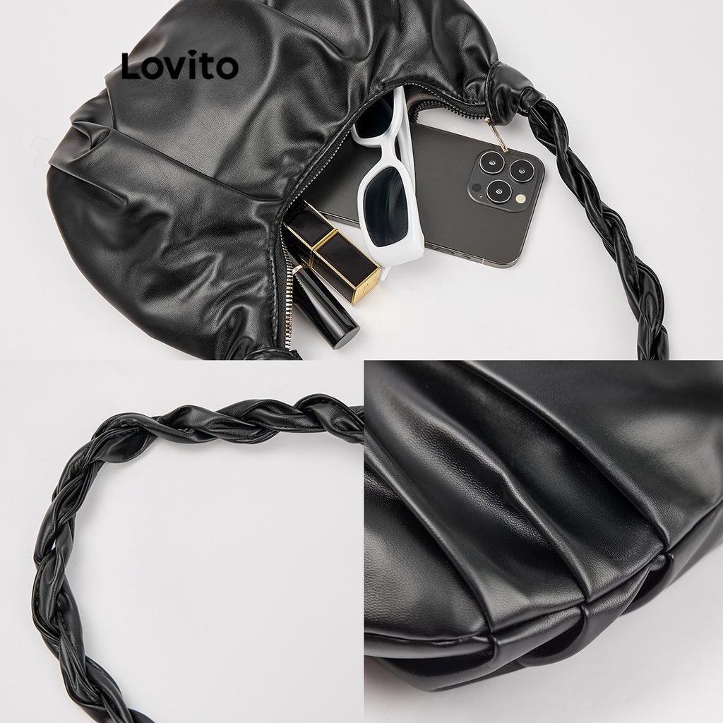 Lovito Casual Plain Plicated Bag for Women L66AD043 (White/Black)