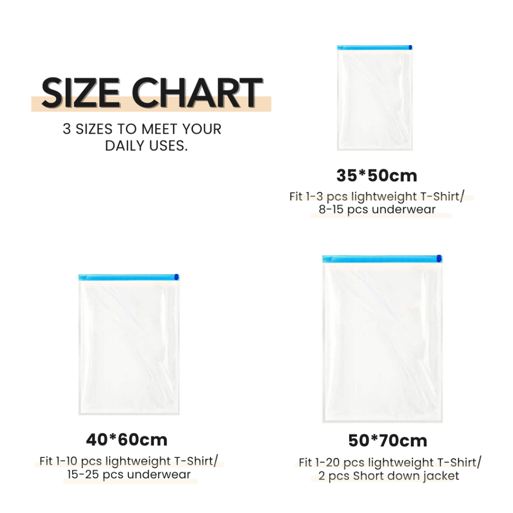 Suitability:suits for travelling especially the puffy clothes Quality:plastic quality is good, no strong plastic smell Performance:Sure helps in reducing space Can vacuum wrap my daughter's favourite stuffed bear to bring for travelling, the small pump is useful to bring along too