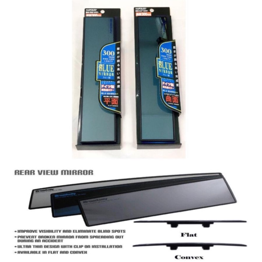 Premium Quality NAPOLEX Broadway Car Rear View Mirror 270mm/300mm FLAT/CONVEX BLUE or CLEAR Mirror Blind Spot Mirror