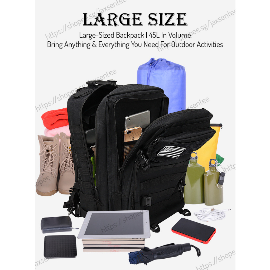 ?SG Seller!!? Army Bag / Hiking Backpack | 45L Large Size | Spine Protection Bag | Best Outdoor