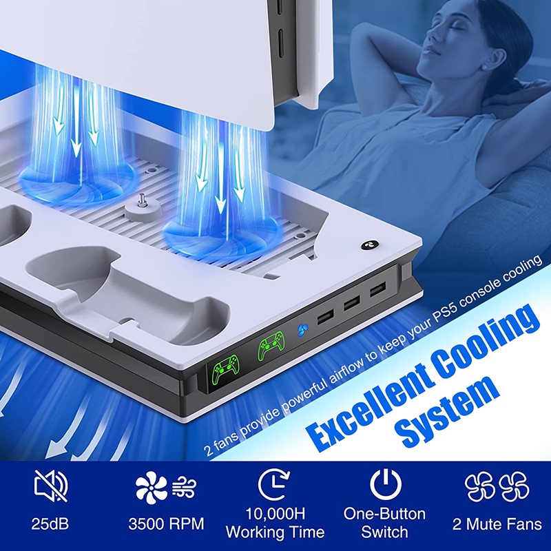 【SG Stock】PS5 Stand With 2 Dual Fast Cooling Fans Controller Charging Station with 3 Extra USB Ports Stand