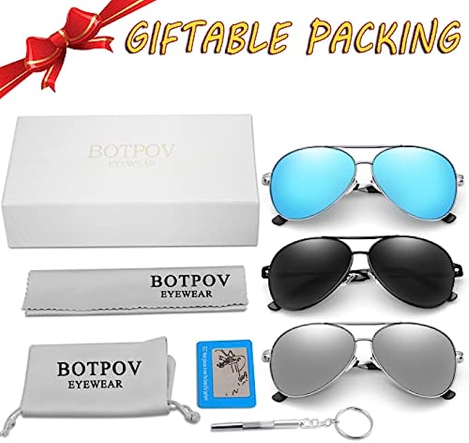 Aviator Sunglasses for Men Women Polarized UV400 Protection Mirrored Lens Metal Frame with Spring Hinges