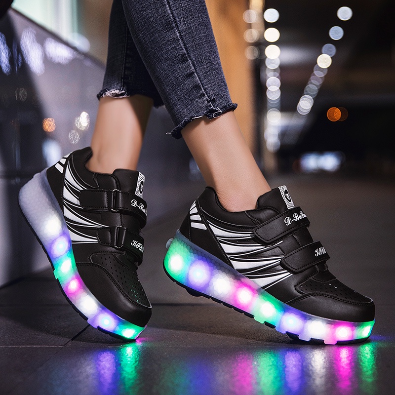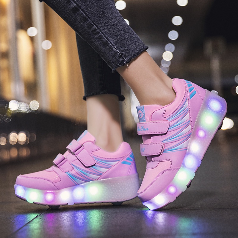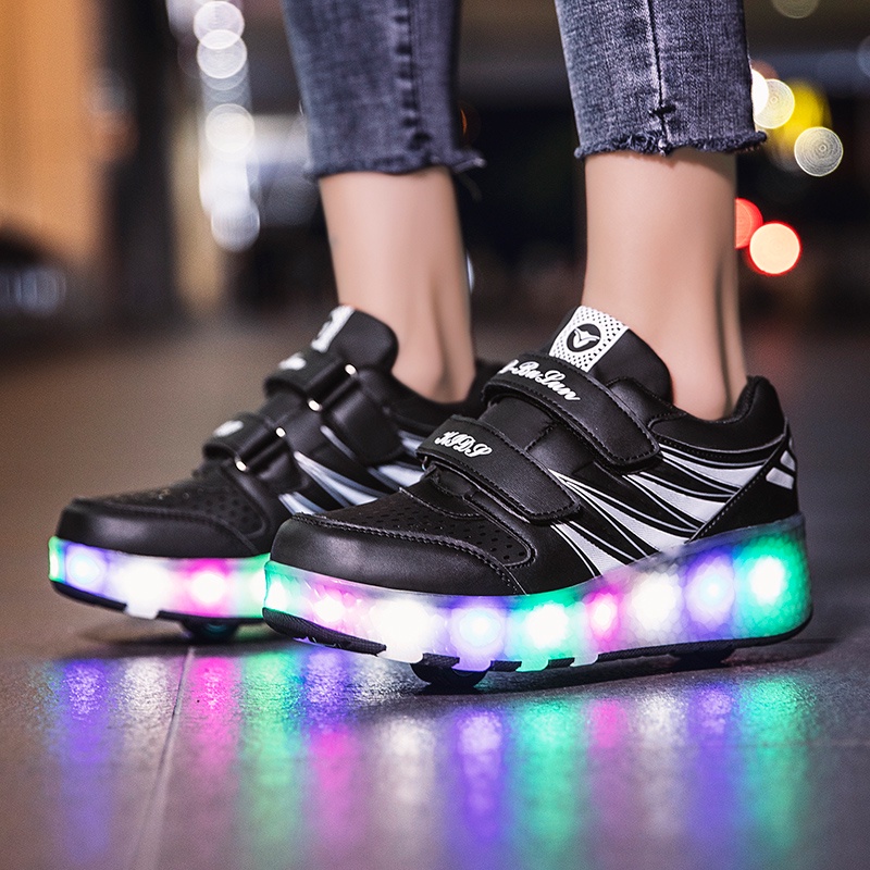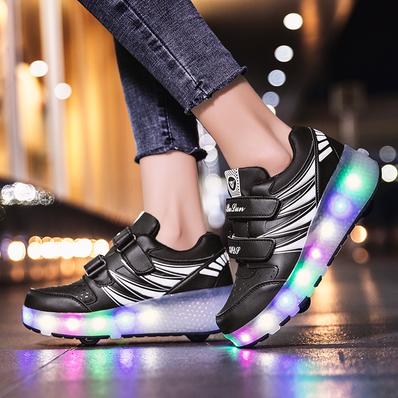 Ready stock Two wheel charging luminous violent HEELYS shoes for children adult roller skates for men and women with lights wheel shoes RRIM SB9X